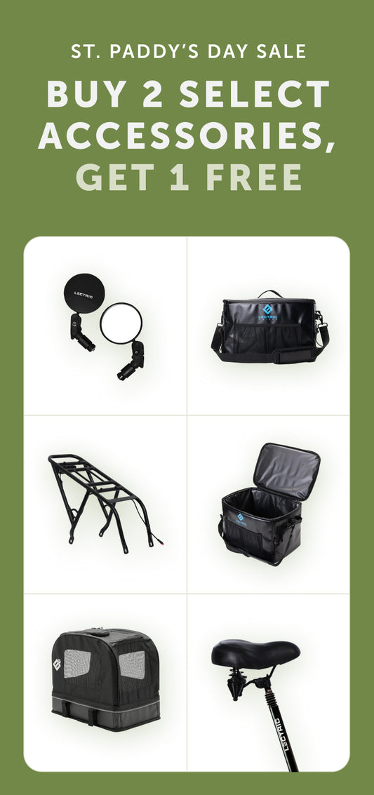 Most eBike batteries are made of lithium-ion cells and are often measured in ampere-hours (Ah) which gives the rider a general idea of the range they might see when riding their eBike; usually more ampere-hours = more miles. Lectric eBikes offer batteries that go up to 14 Ah and provide the rider with a little extra juice to go further. Our Dual-Battery XPedition can rock 28 Ah of battery power and can go up to 120 miles under a single charge!